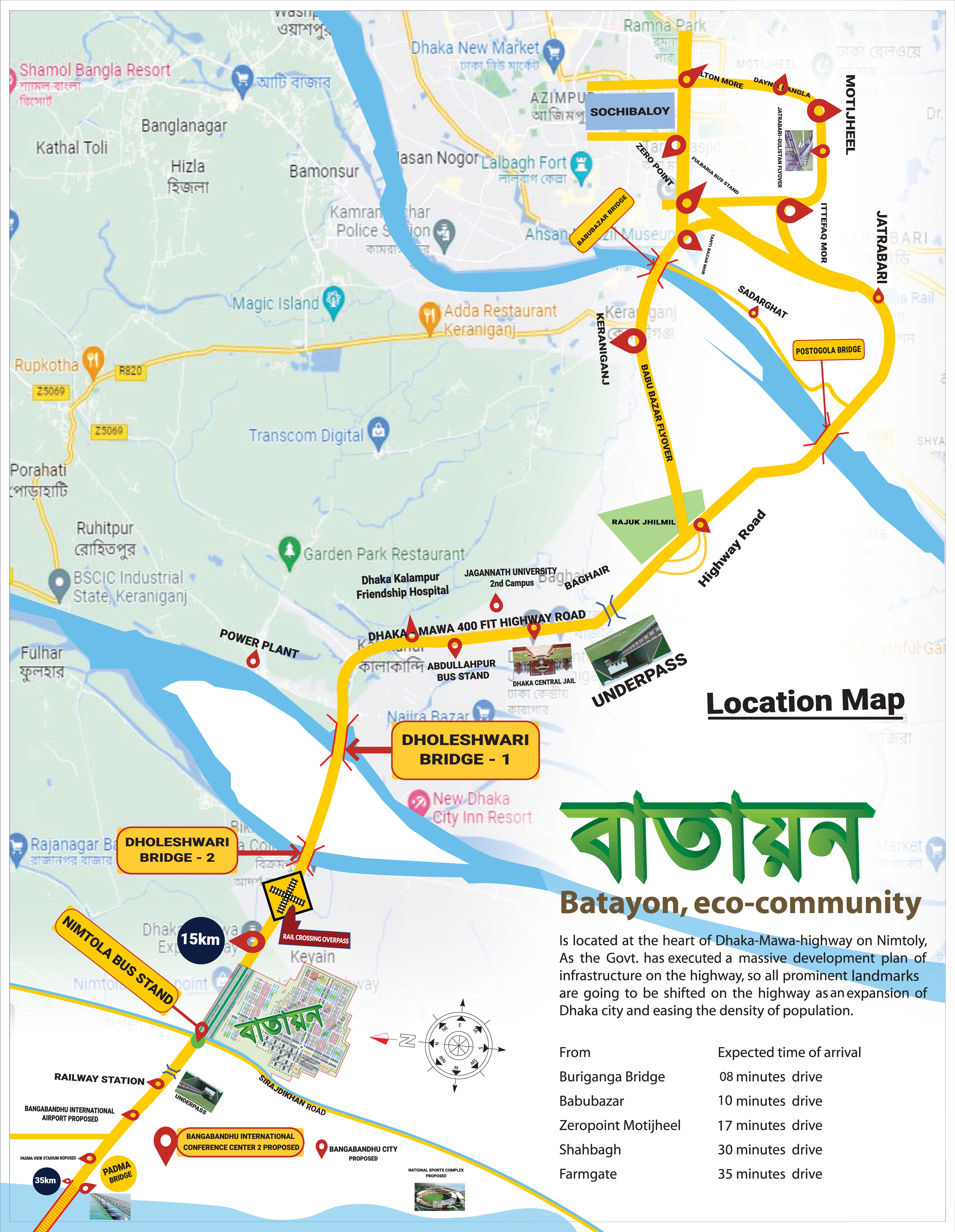 Besides 25 25-minute driving distance from Motijheel, this project enjoys excellent road linkage to the 8-lane Dhaka –Mawa Highway connecting the Padma Bridge.
