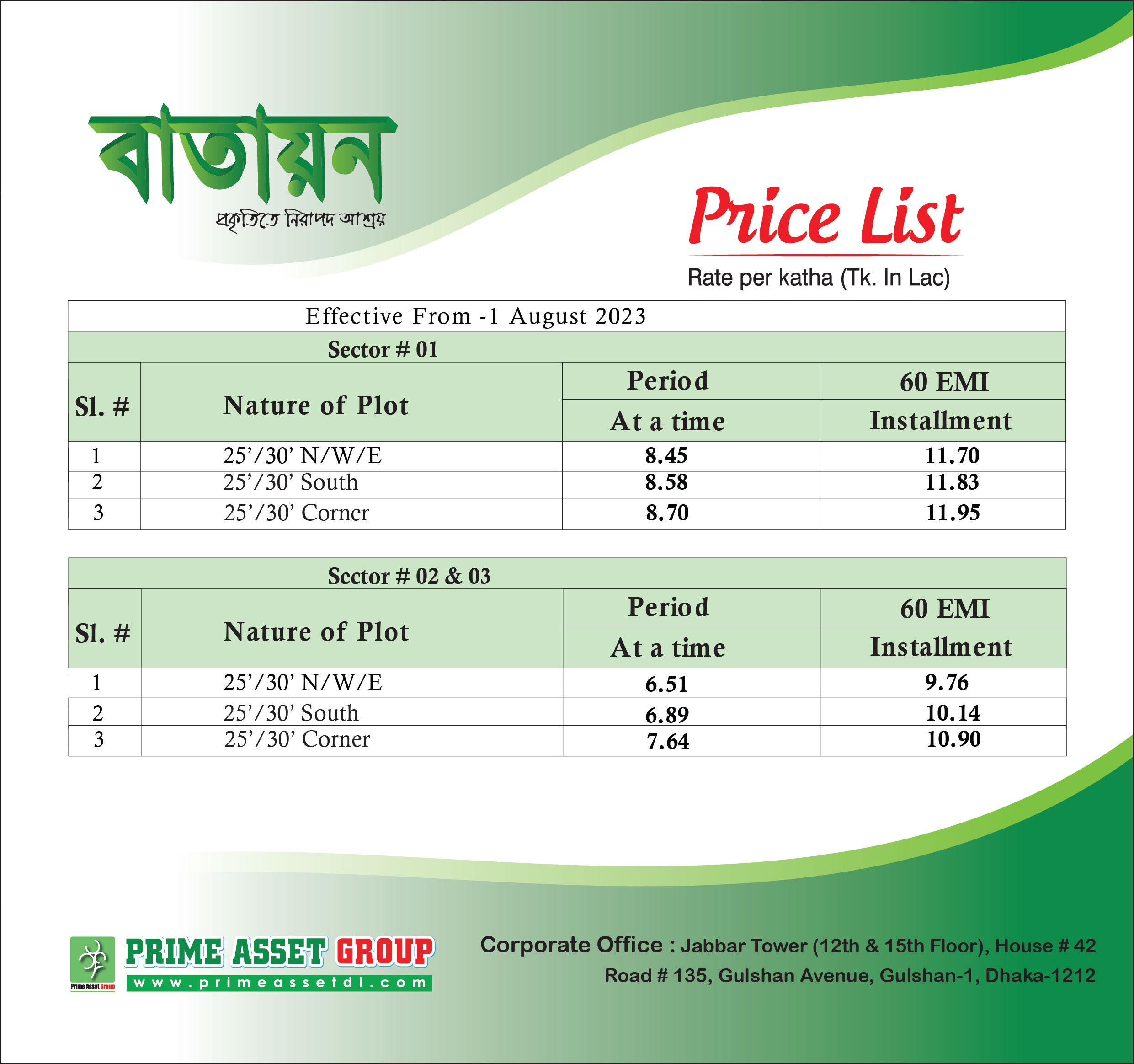 | Standard Plot Size | 3, 4, 5, & 10 Katha |