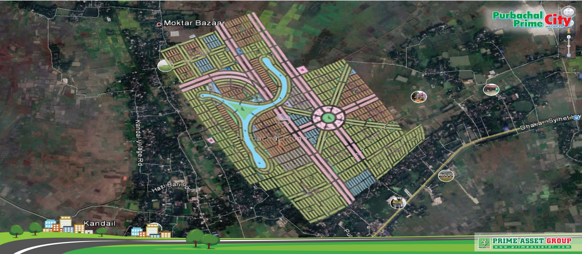 The Purbachal New Town project is the most significant planned housing project in Bangladesh. It was known as before Purbachal Residential Model Town. The project area is about 6227 acres, equivalent to 25 square kilometres. The project area is about 6227 acres, which is equal to 25 square kilometres.