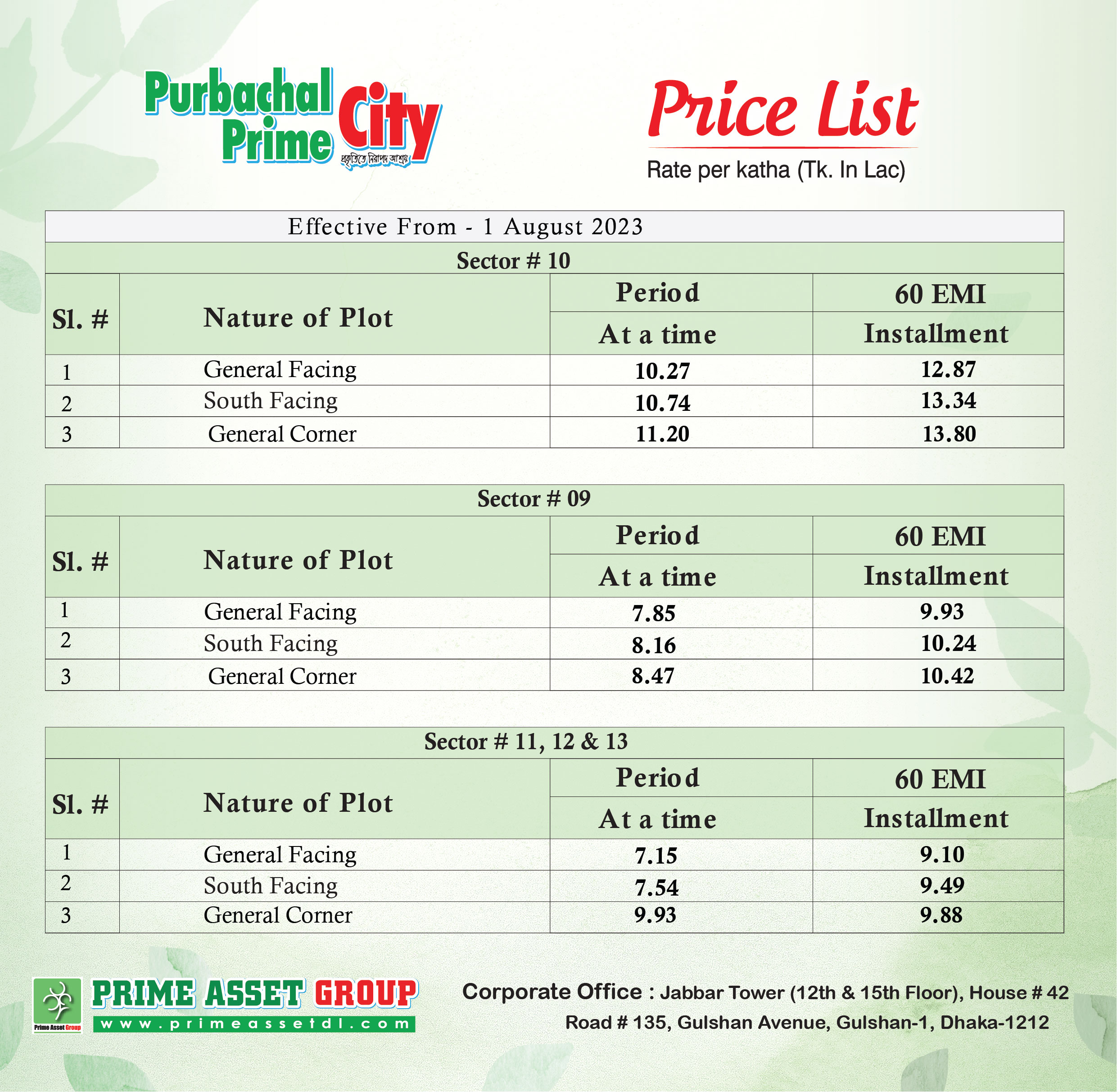 Purbachal plot price has varied in different aspects. Some prominent companies include Purbachal Prime City, Purbachal Americal City, Purbachal New Town, etc. We have a project called Purbachal Prime City in the Purbachal area; here, you will get all kinds to establish residential and commercial spaces.